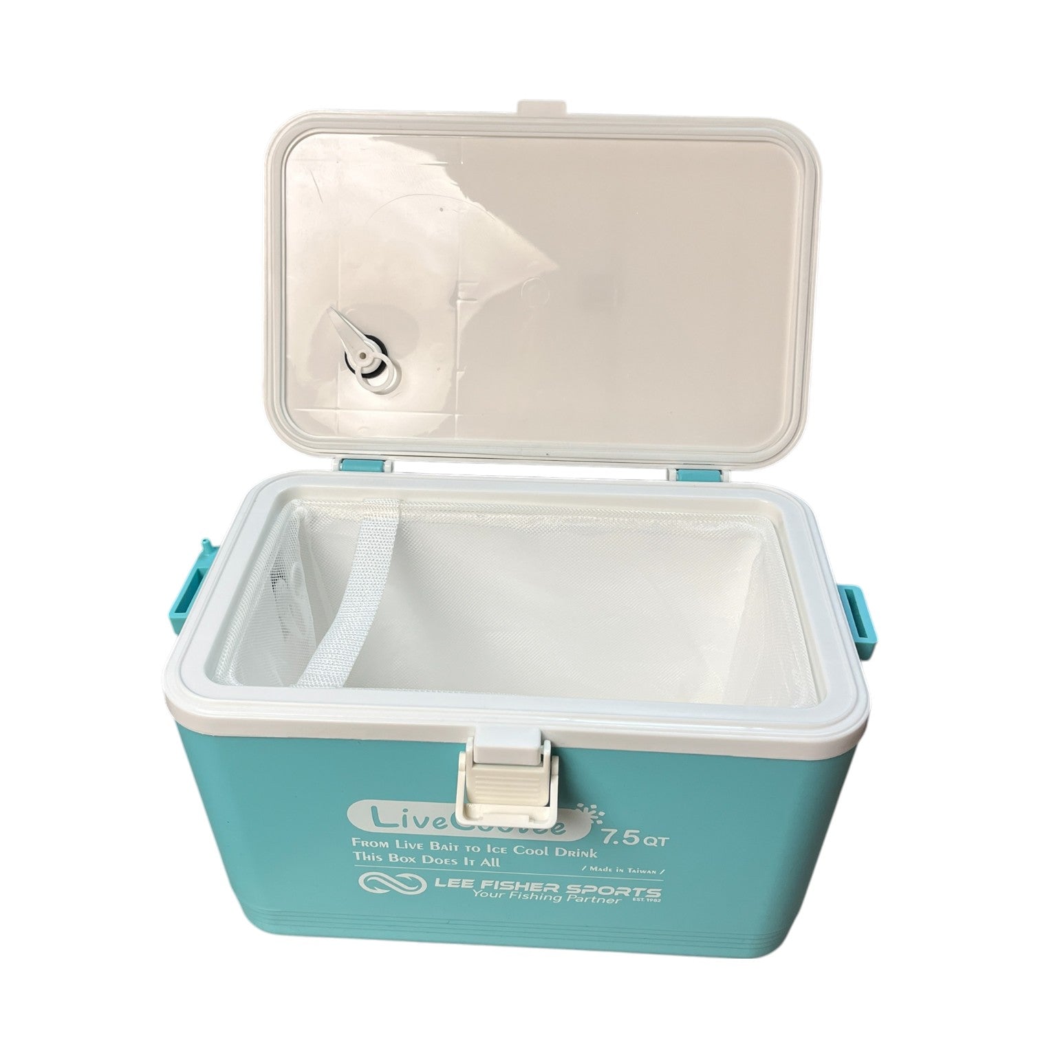 7.5 Quart Live Bait Box with Aerator Ports & Inner Mesh Basket – Insulated Minnow Bucket, Snap-Lock Lid, Doubles as Drink Cooler